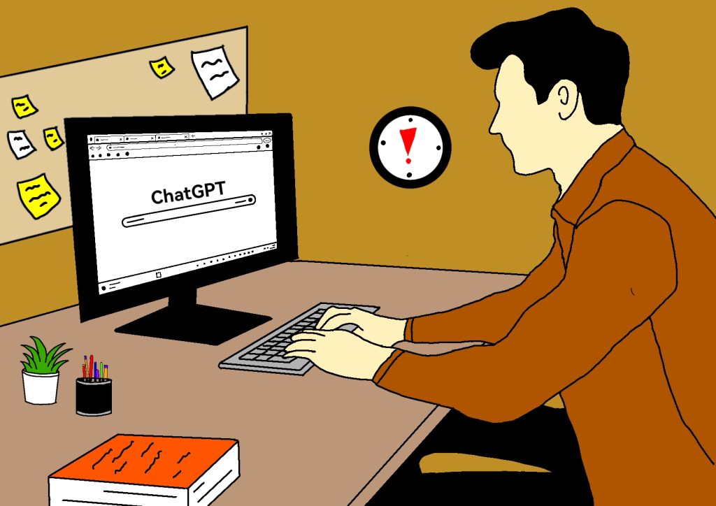 Ilustrasi seseorang yang sedang berselancar di salah satu Chat Open AI (Ilustrasi: Fachmi Dwi Gunawan/SM).